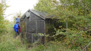 Another short walk led us to a gap in a hedge passing through which we entered a field, the site of the Interplanetary Scintillation Array (IPS). Built in 1967, in its final form this array covered nine acres and consisted of 4096 dipoles operating as a phased array at a frequency of 81.5MHz. It was designed to measure the high frequency fluctuations of radio sources and specifically the solar wind. Using this array Jocelyn Bell made the first detection of a pulsar in 1967. When entering the field we passed a small overgrown hut. This hut housed the receiving and recording equipment used in this historic discovery and braver members of the visiting group, who fought their way into the hut, were rewarded to find some original equipment still in situ. The array itself is sadly disappearing into the undergrowth.