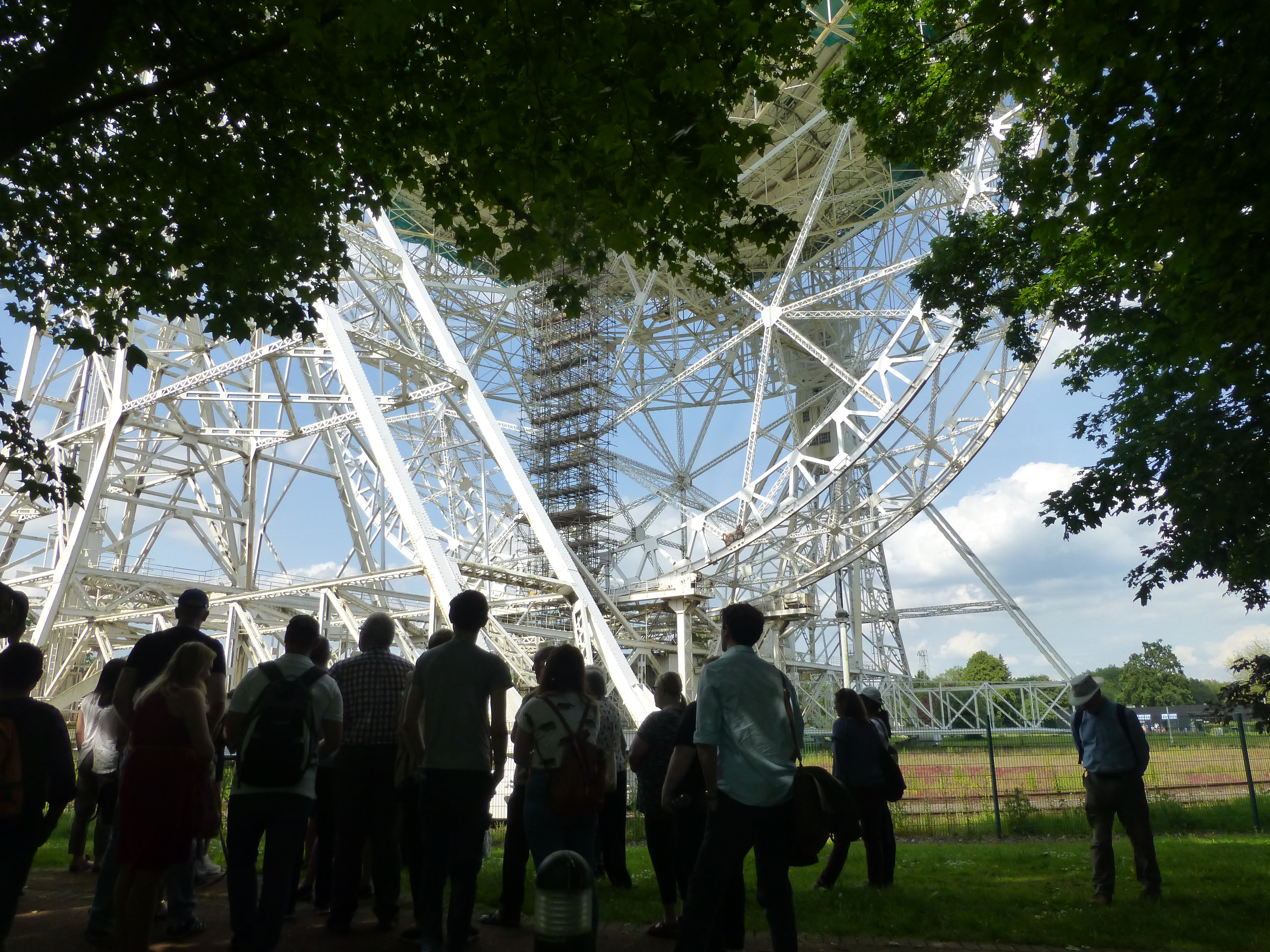 The visit ended with a walking tour around the base of the Lovell Telescope which included a talk by one of the centre’s Explainer volunteers. He explained that with its 76m dish the telescope is the 3rd largest steerable radio telescope in the world and mentioned that the telescope is currently undergoing maintenance work including painting, steelwork repairs, and replacement of the original 1957 surface.